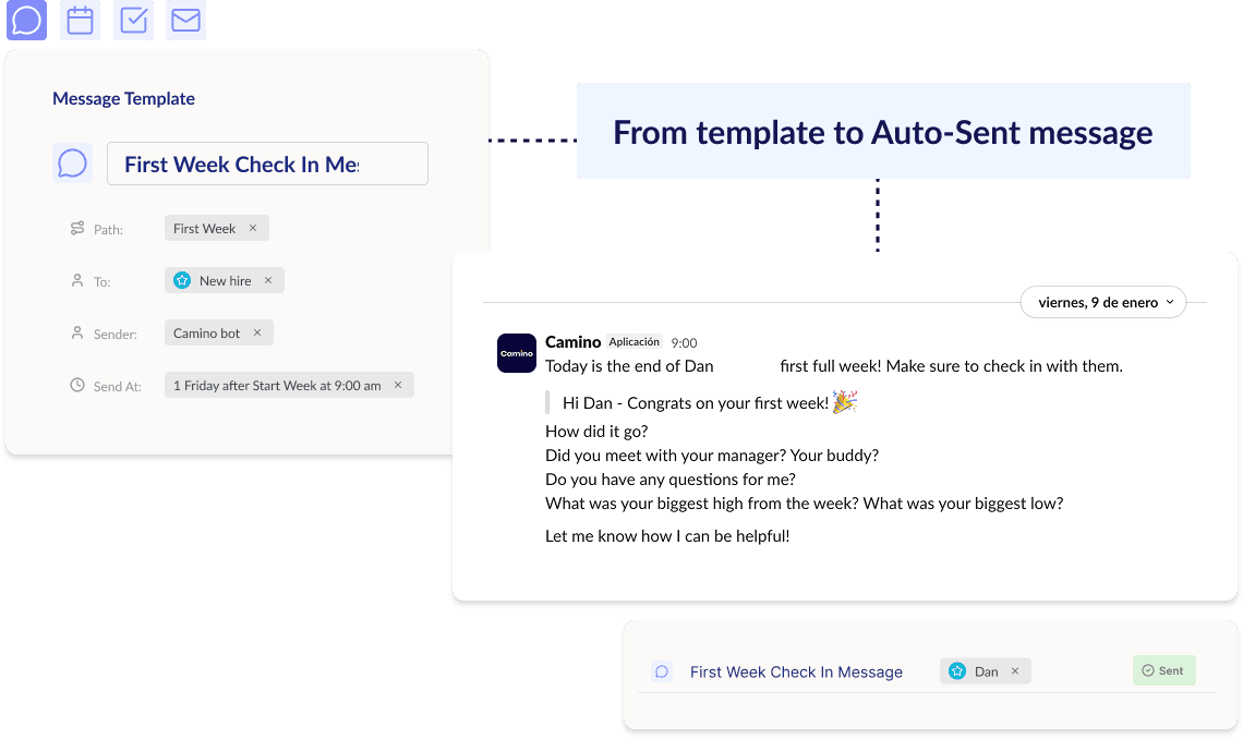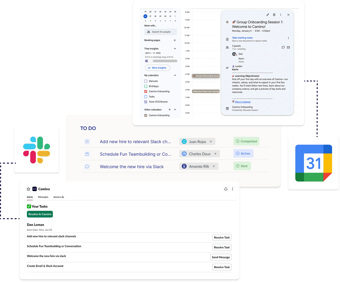 Automate the busywork. Deliver consistent, high-quality onboarding. Save hours per hire, all with Camino.
